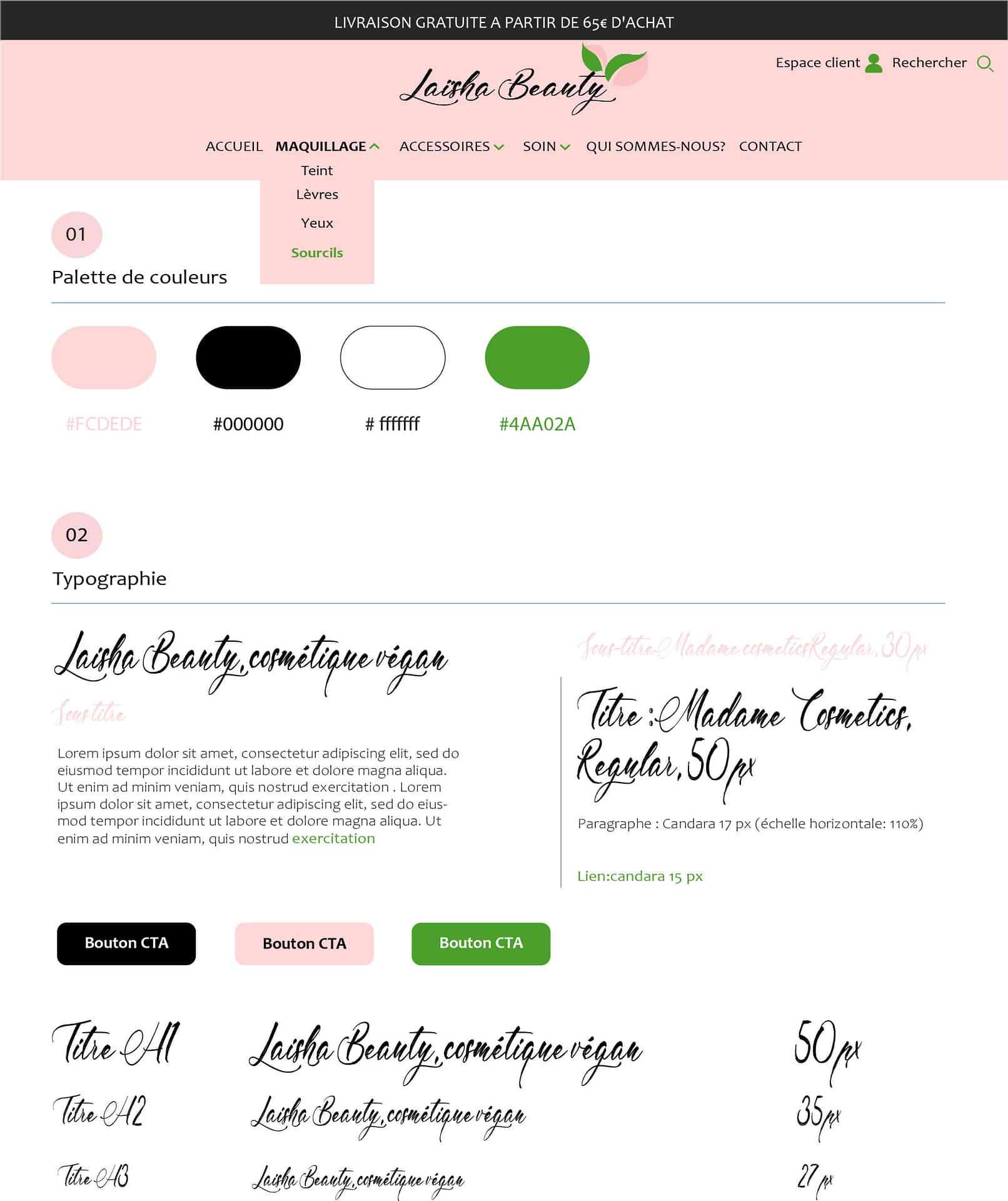 Ma cliente souhaitait redynamiser son entreprise qui est dans la cosmétique 100% végan. J’ai donc refait le logo, le logo médaillon ainsi que des déclinaisons couleurs. Mais j’ai également crée la charte graphique et des pictogrammes. Enfin j’ai conçu la maquette du site dont une fiche produit.